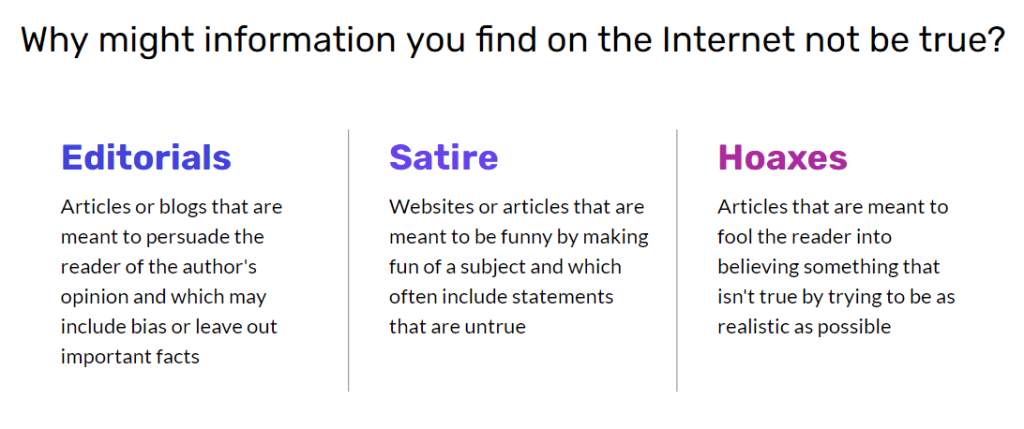 - It’s important not to believe everything you see on the internet, since people can make things up that aren’t true. Always think carefully about the things you see online!