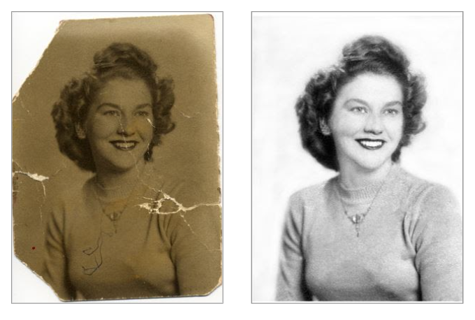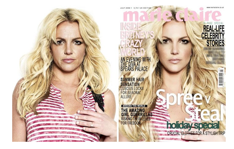 Here is an example of photo retouching, which is when a photo is digitally altered to enhance the way someone or something looks.