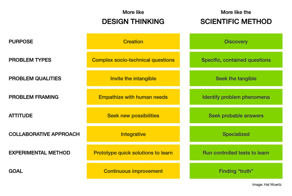Meanwhile, Design Thinking couches scientific truths in our already complex reality by focusing on the humans at the center of a challenge.