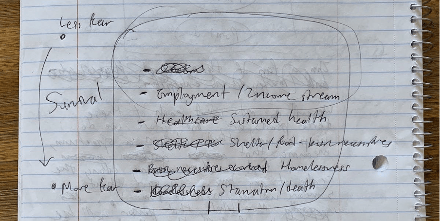 I was having a conversation with my sister-in-law, and I began communicating some threads of an initial framework. I told her that our relationship with money could be distilled into three main things: (1) Survival, (2) Freedom, and (3) Power. I imagined them to sit along a vertical spectrum, where you have to traverse through each one sequentially to experience how money influences your identity.