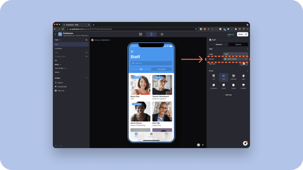 6. Once you have the correct data coming through to your ‘List Block’ in Softr, you can start playing with the look and feel of it by clicking on the
