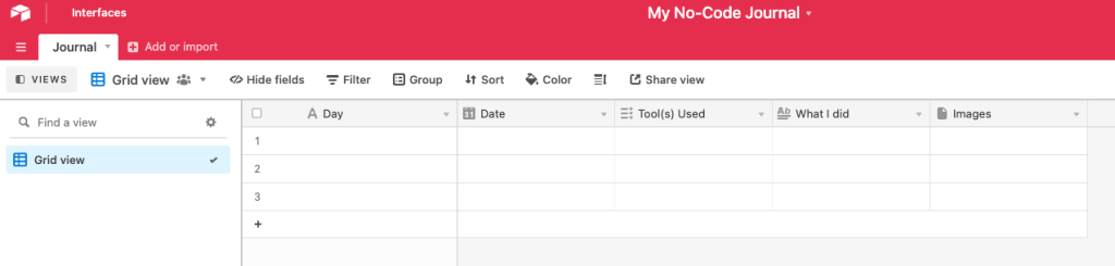 Firstly, make sure to have open the Airtable base that you created for your journal on Task 3.